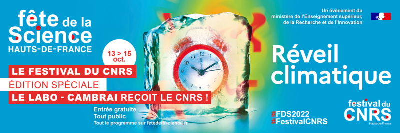 Le Festival du CNRS 2022 est proposé par le CNRS, Le Labo - Cambrai et la Communauté d'agglomération de Cambrai / Festival cofinancé par la Région Hauts-de-France / Avec le soutien de Ombelliscience et l'Université de Lille