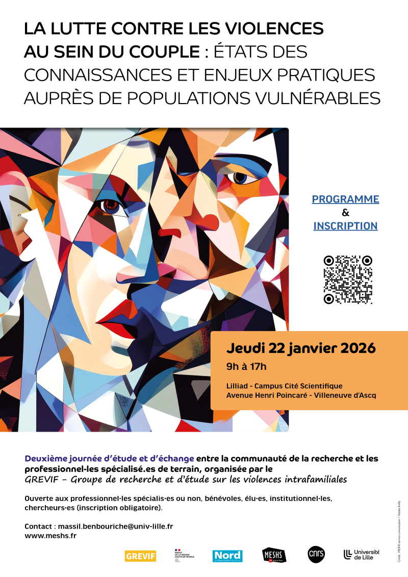Le GRÉVIF (Groupe de Recherche et d'Étude sur les Violences Intrafamiliales) organise sa 2e journée d’étude et d’échange entre la communauté de la recherche et les professionnel·les spécialisé·es de terrain. Cette journée est ouverte aux professionnel·les spécialisé·es ou non, bénévoles, élu·es, institutionnel·les, chercheurs·es.