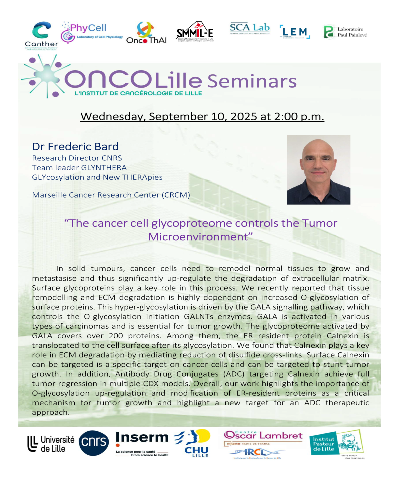 Ce séminaire se portera sur : The cancer cell glycoproteome controls the Tumor Microenvironment.